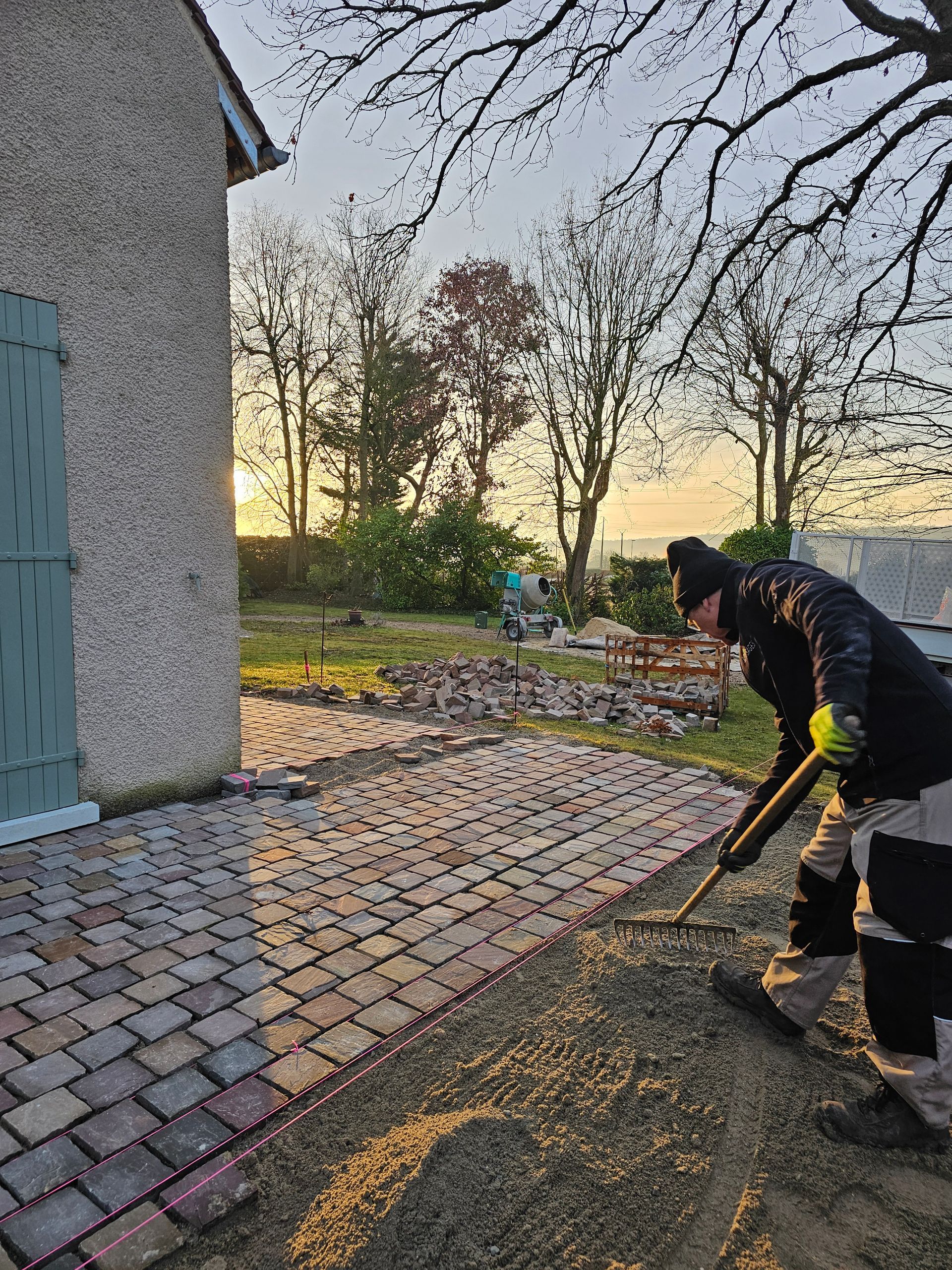 Les pavés sont posés, le jointoiement est terminé, il faut encore nettoyer pour un rendu parfait. Arrosage, retrait des résidus : chaque détail compte. Comptez sur nous pour vous laisser un résultat absolument irréprochable. La satisfaction de nos clients est une de nos priorités. Vous avez d’autres projets ? Vous voulez voir plus grand ?