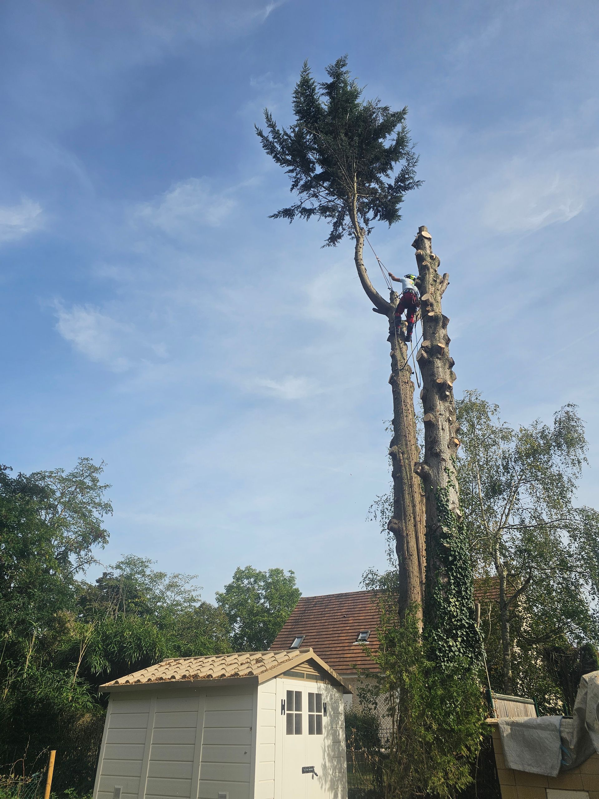 L’abattage d’un arbre est parfois nécessaire et délicat. Lorsque l’arbre menace un bâtiment ou une installation, il convient de prendre des précautions afin de l’abattre sans générer de dommages collatéraux. Nous sommes habilités à réaliser ce type d’abattage périlleux : en rétention, avec démontage ou tyrolienne.